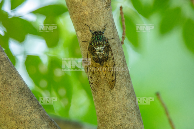 セミ科昆虫 大型のセミ 黒地に緑色の斑紋