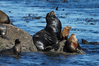 カリフォルニアアシカ、鰭脚類、海生哺乳類、群れ、岩礁、コロニー