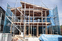 建造物 屋外 晴れ 建設現場 建設 現場 建築 足場 建機 建設機械 ショベルカー 働く車